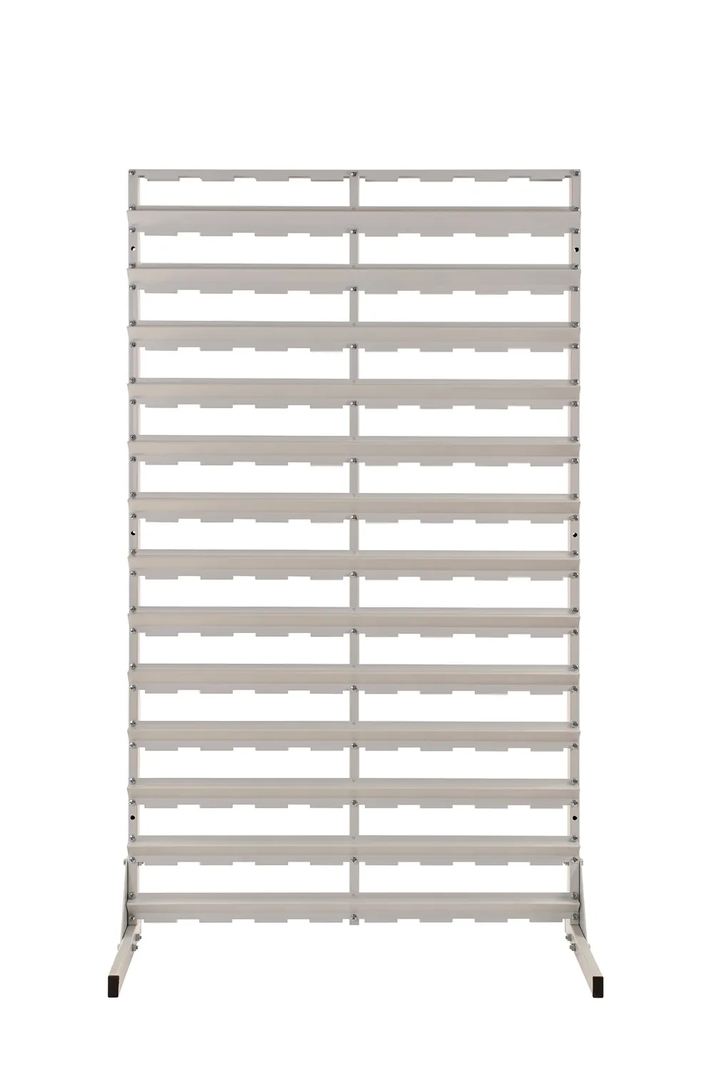regał wykonany solidnie z grubego materiału, stabilny i cięzki